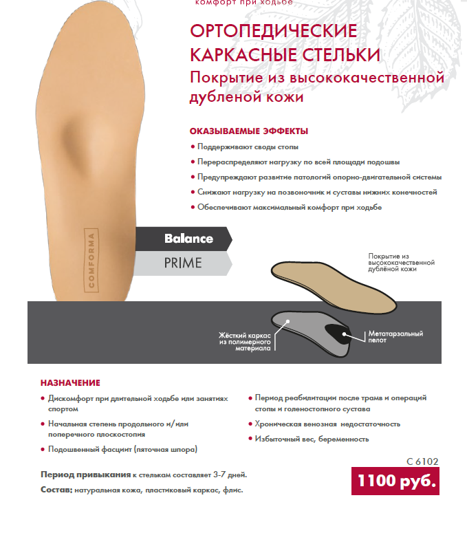С 6102_р.45_Стельки ортопедические каркасные Balance (покрытие из высококач. дубленой кожи) Prime
