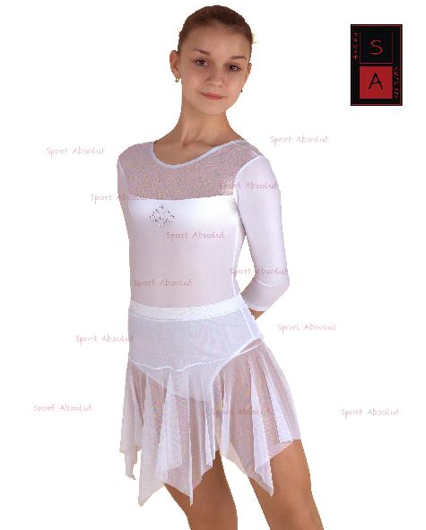 Юбка Ю 17-551 (Ю 1.07), модель № 12, цвет bianco 0028. Юбка изготовлена из итальянской (100% полиамид) прозрачной сетки. Выполнена юбка на кокетке, полностью прикрывает бедра и имеет клиновидный нижний срез. Юбка может быть использована для занятий танцами и хореографией.